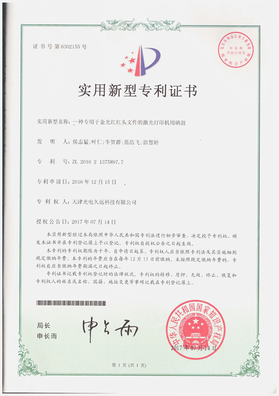 • 一種專用于金光紅紅頭文件的激光打印機(jī)用硒鼓