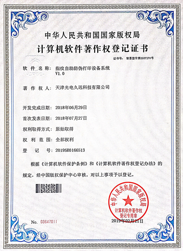 • 指紋自助防偽打印設(shè)備系統(tǒng)